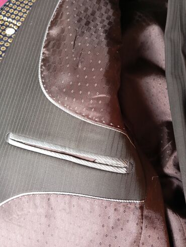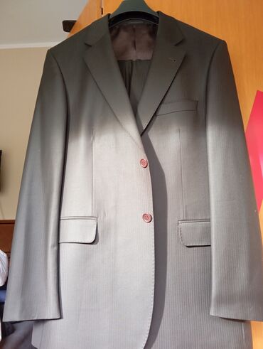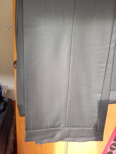 Svetlosivi muški komplet – prsluk i pantalone u istoj tkanini sa diskretnim karo šarom. - Veličina: 38 - Prsluk: jednoredni, pet dugmadi, dva spoljašnja džepa i ukrasni lančić; V-izrez, klasiča...