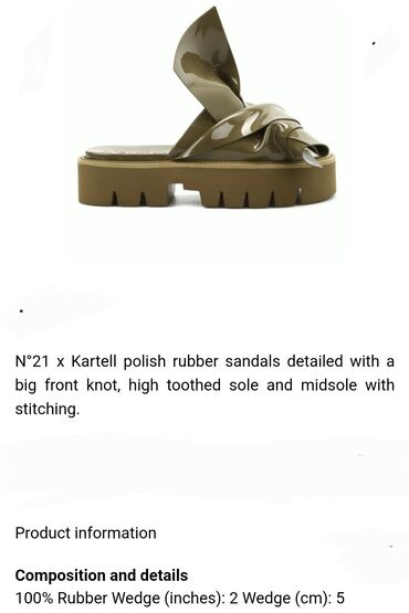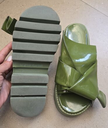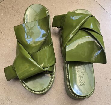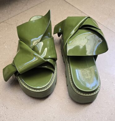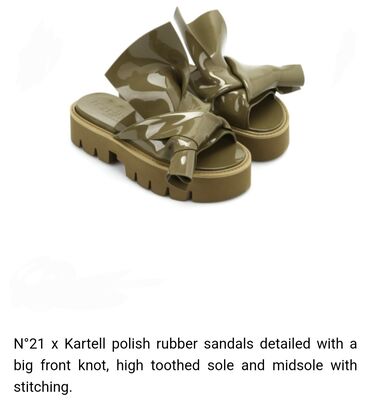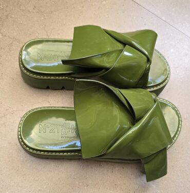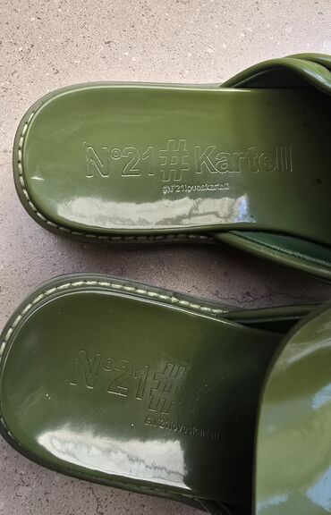 O trošku kupcaPokupiti na licu mestaN21 cartell kozne papuče, izdugnuta guma, kao mala platforma. Maslinasto zelena boja. Skupocen brend numero ventuno, N.21 ili No21. Broj 37, super stanje. Model je poput inuikii modela, veoma atraktivne.