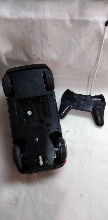 Na daljinski Mitsubishi Racer,27 mHz,1:18 (28 cm) svetli napred, bez baterija(u auto 4x1,5V AA, u daljinac 2x1,5 V)2 pr.gume,poklopac baterija i daljinac(Napred/nazad radi kontra) nisu original..Prednja maska(vidi se na 2.slici) i nebitan levi deo trapa osteceni.