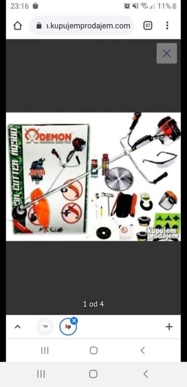Motorni Trimer 5,2 KS Demon Profesional NOVO NOVO Najači model, sa ojačanim kardanom, kvalitetnijim ručkama sa komandama, japanskim metalnim karburatorom i jačim nosačem zaštitne plastike kod nogu, veliki nož za strunu, niklovane ručke i cev prenosa. Opremljen je najsnaznijim dvotaktnim visokoturažnim motorom, Veci razmak ručica.