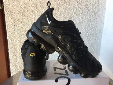 Patike – crne, sa vazdušnim jastučićima velicina 0d 41 do 46 - Model: inspirisan Nike Air Max Plus (TN) siluetom - Boja: potpuno crna (triple black) - Gornjište: kombinacija mrežice i sintetičkih...