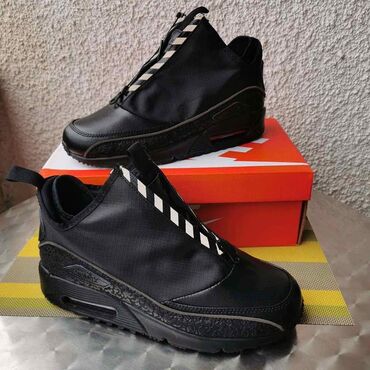 Nike patike – crne, sa belim đonom i Air jastučićem u peti. Gornjište kombinacija brušene kože i tekstila, sa diskretnim Swoosh logoom sa strane. Klasično pertlanje sa ravnim pertlama. Deblji međđo...