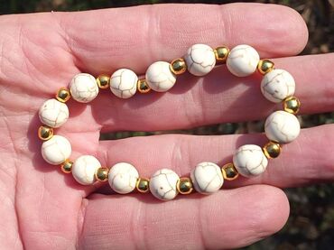 Narukvica beli Haulit Narukvica od belog Haulita, poludragi kamen. Rastegljiva Ukupna dužina-obim 22 cm, prečnik 0,8 cm. Stanje kao na slikama. Prodajem za 900 din. najbrži kontakt na mob. L...