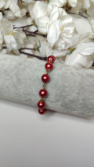 Narukvica sa crvenim perlama - Elegantna narukvica ručne izrade - Niz