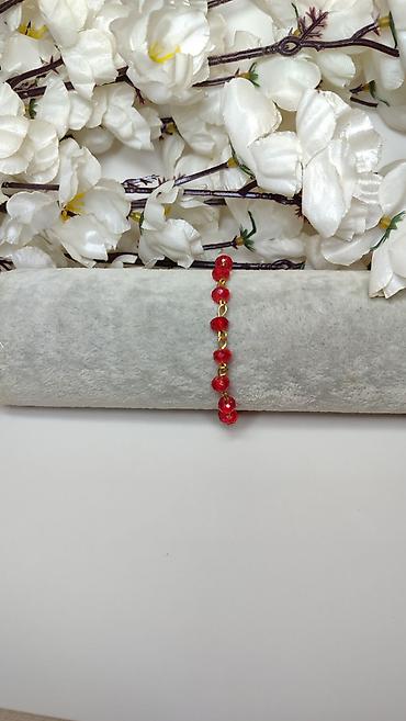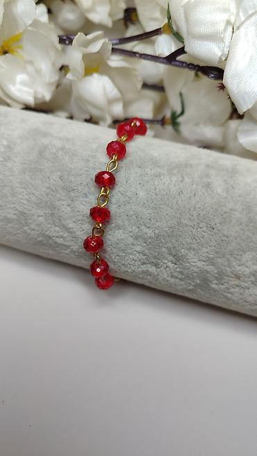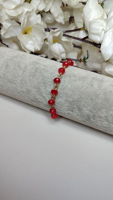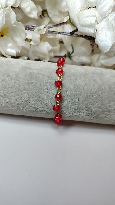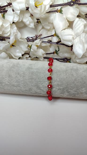 - Niz brušenih crvenih staklenih perli (facetirane) koje daju diskretan sjaj