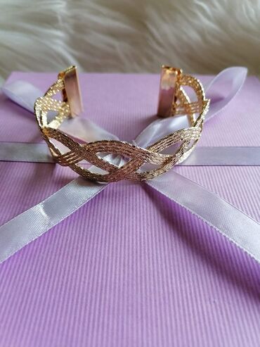 Elegantna narukvica od bakra sa magnetima u ružičasto-zlatnoj (rose gold) boji, segmentnog dizajna sa X/O motivima. Spoljašnji delovi sadrže ukrasne kristale postavljene u nizovima, dok su unutrašn...