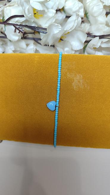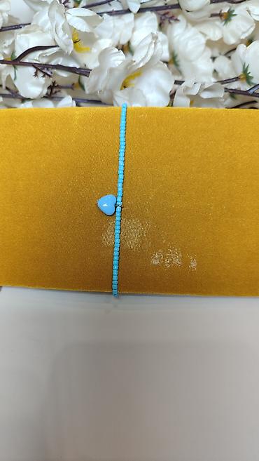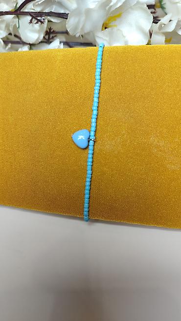 Narušnica/anklet od sitnih tirkizno-plavih perlica sa centralnim priveskom u obliku srca.