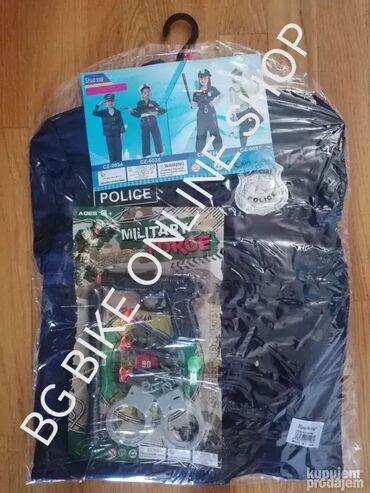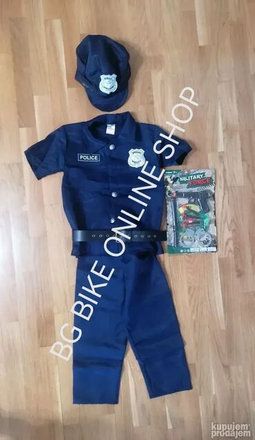Naše slike uživo ! Policajac novi kostimi, uniforma može biti i za dečake i za devojčiceAko neko želi dodatno: 1) deciji pendrek 350 dinara - duzina 33cm. 2) metalne lisice sa ključem 350 dinaraKOMPLET sadrži: 1) košulju2) pojas odnosno kajš3) pantalone (imaju lastiš u struku)4) kačket tj kapu sa grbom+ set sa igračkama 1) mala tanja palica 19cm 2) pištolj sa dodacima3) male plastične lisice4) pištaljka Izmerite dete pre kupovine!Za uzrast od 5 do 7+ godina- košulja: dužina oko 53cm. Pantalone obim struka od 46 do 74cm, duzina pantalona 73cm. Preko 400 vrsta kostima: NOVO Kostim za decu deciji kostimi za maskenbal, maskembal , maska maske za halloween noc vestica ili zurku, rodjendanPOGLEDAJTE OSTALE NASE OGLASE> > > > > > > > > > > > > > > > > > > > > > > > > > > > > > > > > > > > > > > > > > Ovaj artikal mozete poruciti na sledece nacine:1) Porukom ovde na sajtu sa podacima za slanje i brojem telefona2) Pozivom na mobilni ili porukom SMS, Viber, Whatsapp Trudimo se da odgovorimo i posaljemo artikal u kratkom roku. Pre slanja cemo obavezno jos jednom potvrditi detalje. Robu saljemo Post Expressom. Postarinu placa kupac prema cenovniku koji mozete videti na njihovom sajtu. Robu mozete preuzeti i licno na Novom Beogradu uz obavezan prethodni dogovor. Povracaj i reklamacije na robu u skladu sa Zakonom o zastiti potrosaca. BG BIKE ONLINE SHOP BeogradMaticni broj: 65560429PIB: