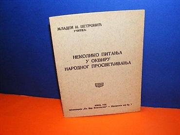 Nekoliko pitanja u okviru narodnog prosvećivanja, Mladen I. Petronić učitelj, Niš 1936 mek povez, džepni format, strana 30, stanje vrlo dobro.