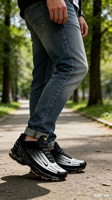 Nike Air Max Plus (TN) patike - Model: Air Max Plus, sa prepoznatljivim TN dizajnom i talasastim TPU prečkama - Gornjište: mrežica sa ojačanjima, različiti printovi (geometrijski šrafirani, pruge/...