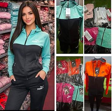 Dva dela ženski trenerka komplet – gornji deo i donji deo. - Gornji deo: zatvarač celom dužinom, visoka kragna, elastične ranfle na rukavima i pojasu. Klasičan sportski kroj, diskretan logotip na ...