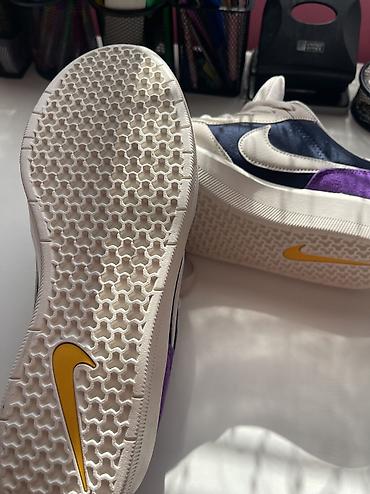 - Boje: ljubičasta/prljavo‑bela/crna sa žutim Nike detaljima