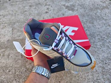 - Jezik sa Nike Shox oznakom, pertle bele sa ljubičastim akcentima.