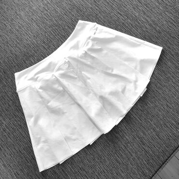 Zara mini suknja od eko kože u tamno braon boji. A-kroj sa dubokim preklopima/plikama napred i sa strane za efektan volumen. U kompletu je širok remen u istom materijalu, sa kružnom kopčom i zlatni...