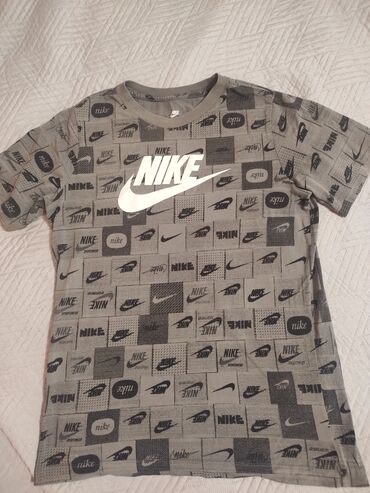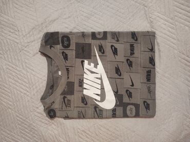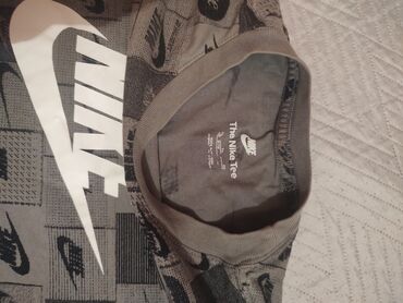 - Dizajn: Sivi all‑over print sa raznim Nike logotipovima i Swoosh simbolima; veliki bele boje “NIKE” + Swoosh na prednjoj strani