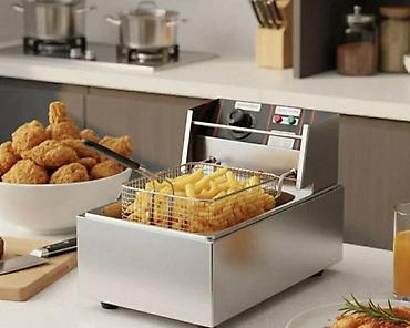 Električna friteza od nerđajućeg čelika, kapaciteta 6 l, snage 2500 W, za profesionalnu ili ličnu upotrebu sa termostatom .