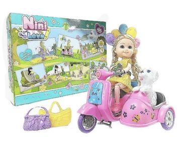 Nini lutka sa motorom dolazi sa zgodnim skuterom, sa kojim može da putuje gde god da poželi 🌍. Na zadnjem delu skuteru je postavljena korpa u koju mogu da stanu sitnice, kao što su torbe, šminka ili njen verni ljubimac 🐱🐶.