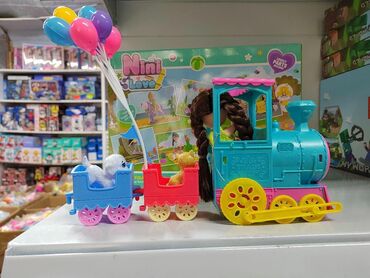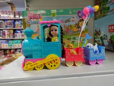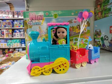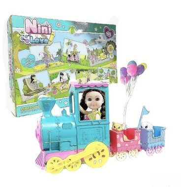 Nini lutka je obućena u prelepu haljinu žute boje i može da pomera ruke i noge. 👗💛 Lokomotiva može da se vozi ili stane na mestu uz pomoć držača za motor. 🚋