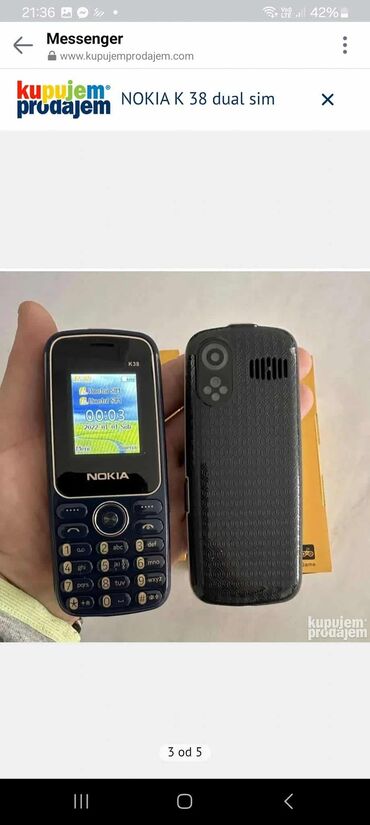 Nokia K38 mobilni telefon sa Dual SIM podrškom, idealan za korisnike koji preferiraju klasičan dizajn i pouzdanost. Opremljen fizičkom tastaturom za lako kucanje i malim ekranom u boji. Model K38 nudi osnovne funkcije mobilnog telefona, uključujući pozive i poruke, kao i mogućnost korišćenja dve SIM kartice istovremeno, što je praktično za razdvajanje poslovnih i privatnih kontakata ili putovanja. Dizajniran je za jednostavnu upotrebu i dugotrajnu bateriju, što ga čini pogodnim za svakodnevnu komunikaciju. Ugrađena kamera omogućava snimanje brzih fotografija. Idealan je za korisnike koji traže funkcionalan i pouzdan telefon bez složenih pametnih funkcija.