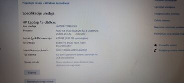 HP laptop – ekran Specifikacije vidljive na fotografiji: - Procesor: Intel Celeron - Memorija (RAM): 4 GB - Disk: ukupno oko 297 GB (C: ~102 GB, D: ~195 GB) - Optički uređaj: DVD-RW (E:) - Operat...250 EUR