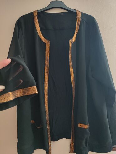 Elegantna ženska jaknica – River Island - Model: kratka jakna/kardigan bez kragne, otvorenog kroja - Materijal: tkanje sa metaliziranim (sjajnim) nitima - Boja/dezen: bež podloga sa tankim tamnim ...
