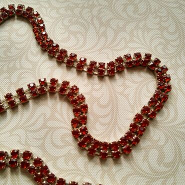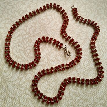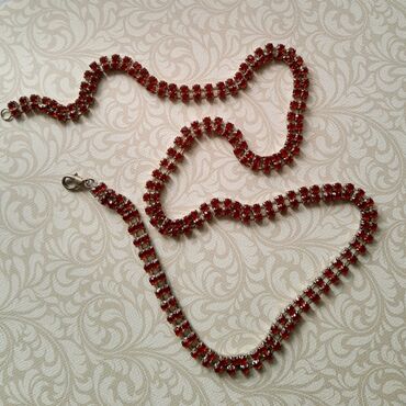 Nov crveni kaiš sa crvenim štrasom Dužina 78cm Trećina cene