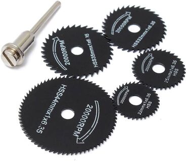 NovoNov koplet 5 kružnih sečiva za drvo. Prečnici sečiva: 44 mm; 35 mm; 32 mm; 25 mm; 22 mm. Ima i nosač.