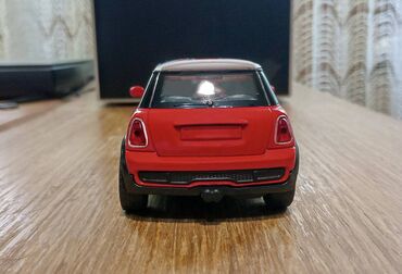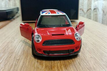 Nov metalni model automobila Mini Moris. Otvaraju mu se vrata, može da se povuče unazad i kada se pusti prelazi par metara. Dimenzije automobila su: 12 x 5,5 cm.