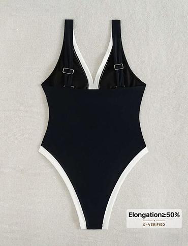- Kontrastne bele lajsne duž dekoltea i izreza na nogama ističu liniju tela