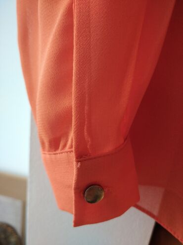 Ženska bluzica/majica sa dugim rukavima, u metalik zlatnoj boji. - Kroj: preklopni V-izrez sprijeda (wrap stil) sa blago skraćenom dužinom do struka. - Materijal: sjajna, plisirana/teksturirana tka...