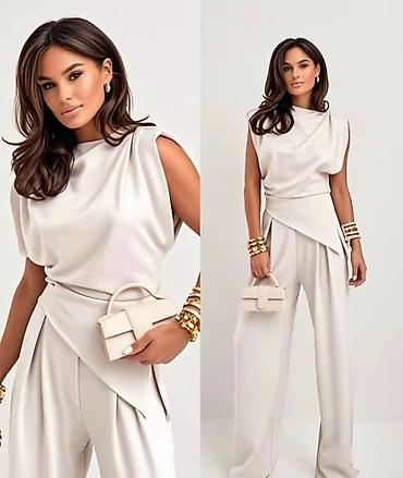 ⚜️ Model 1 – Elegantni beli komplet, drapirani top + široke pantalone