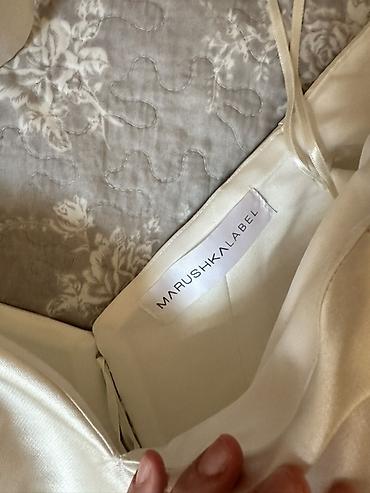 Marushka Label kratka haljina od satena – bela/šampanj nijansa.