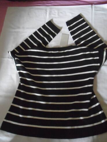 Veličina odgovara L - XL Bodi majica sa miš rukavima koji se provide Ima cirkone pri dnu Nošena par puta Ima malo oštećenje na unutrašnjoj strani koje je nastalo pri pokušaju da skinem etiketu...