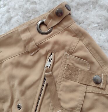 Udobna mini suknja A-kroj u bež boji sa detaljima dugmadi i džepova, idealna za svakodnevno nošenje.