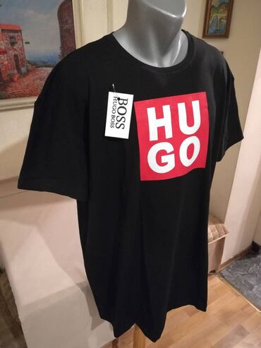 Nova muska markirana majica Hugo Boss u velikom broju 4XL Crna. Turska. Vrlo dobra muska majica za muskarce svih uzrasta. Uradjena od prijatnog i kvalitetnog pamuka. Vrlo lepog dezena, lako se kombinuje sa bilo kojim komadom garderobe. Super ide na farmerke, trenerke, bermude i pantalone. Odlicna muska pamucna majica za sve prilike. Muska majica Hugo Boss u velikom broju 4XL je nova sa etiketom.
