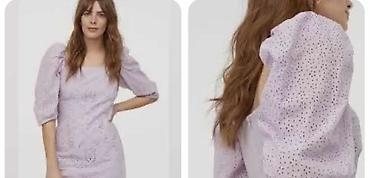 Nova prelepa HM haljina, rupičasti vez. Boja je nežno lavanda, naznačena je veličina 44.