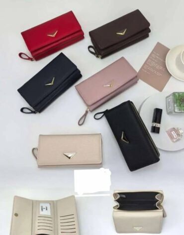 Crveni kožni novčanik – ženski model, preklopni - Materijal: prirodna koža sa zrnastom teksturom - Boja: intenzivno crvena - Zatvaranje: metalni pritiskač - Unutrašnji raspored: - Više pretinaca...1 500 RSD
