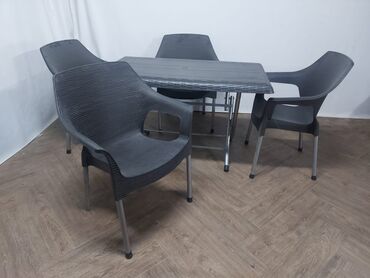 Baštenska garnitura Ella Dark - Sastav: pravougaoni sto sa staklenom pločom + 4 stolice - Dizajn: moderno, tamno siva/“dark” nijansa sa finim linijama - Materijali: metalna konstrukcija sa zaštitn...