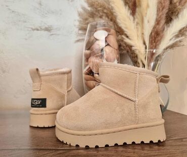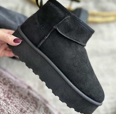 Ženske zimske čizmice UGG sa toplom krznanom postavom i platform đonom. - Model: gležnjače sa podignutim, mekanim krznenim okovratnikom - Materijal spolja: brušena koža/velur izgled - Postava: gus...