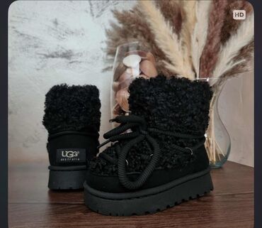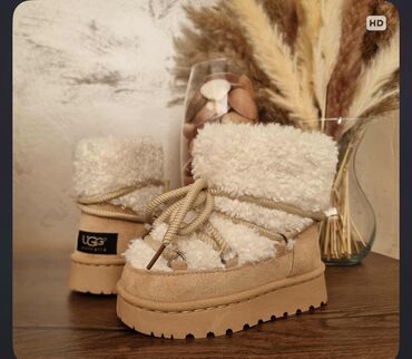 Ženske zimske čizmice UGG sa toplom krznanom postavom i platform đonom. - Model: gležnjače sa podignutim, mekanim krznenim okovratnikom - Materijal spolja: brušena koža/velur izgled - Postava: gus...