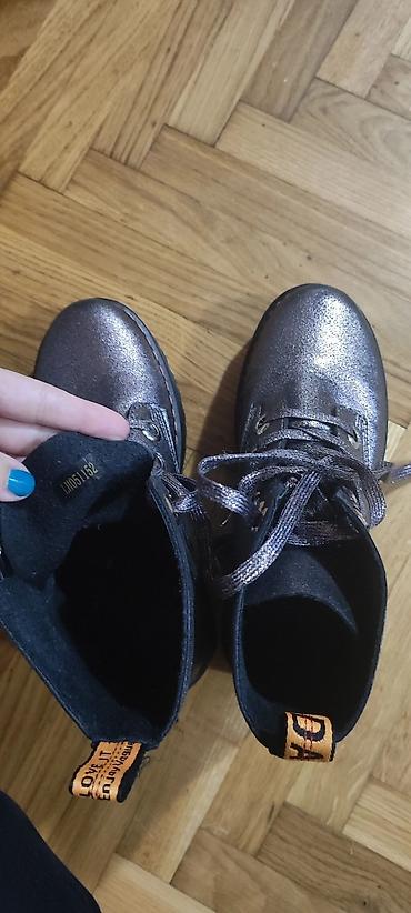 Bele kožne zimske čizme sa pertlama - Materijal: glatka bela koža spolja, meka postava iznutra. - Model: gležnjače sa klasičnim pertlanjem kroz metalne rupice. - Đon: debeli gumeni đon sa izraženi...