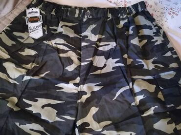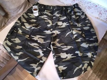 NovoNove muske bermude za izrazito krupnije muskarce Henxing Maskirne Novo. Odlicne muske pamucne bermude za krupnije muskarce svih generacija. Vrlo veliki model. Veoma prijatne za nosenje, izradjene su od kvalitetnog i prirodnog materijala. Imaju dva dzepa na bokovima, dva dzepa sa ziperom sa strane na nogavicama i jedan dzep pozadi. Takodje, imaju i uckur za zatezanje oko pojasa. Lagane, komotne muske pamucne bermude u maskirnoj boji, idealne za sezonu prolece/leto. Nove muske pamucne bermude u velikom broju Henxing sa etiketom.
