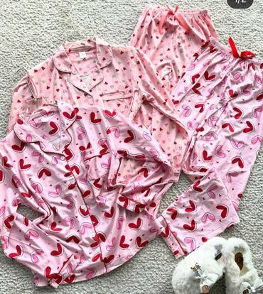 Ženske pidžame – komplet košulja i pantalone - Model: klasična pidžama sa dugmadima, kragnom i džepom na grudima; dugi rukavi i ravne nogavice. - Materijal: meka, rastegljiva tkanina prijatna za k...