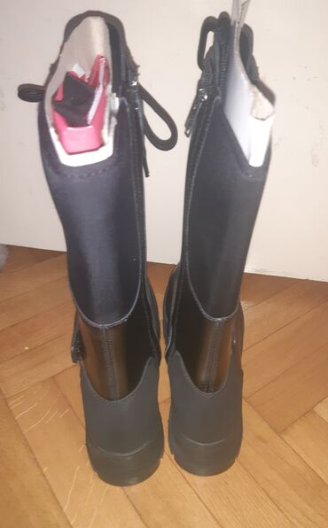 Crne zimske čizme sa krznom i dubokim đonom - Visoke, tople čizme sa mekanom krznenom postavom oko zgloba i iznutra. - Gornjište od vodoodbojnog materijala, pogodno za sneg i kišu. - Robustan, dub...