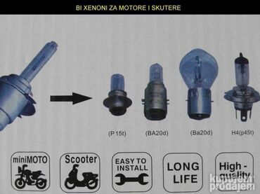 O trošku kupcaPokupiti na licu mestaNOVI Bi xenon kompleti za motore i skutere sa tri adaptera. Cena kompleta je 20 eura sa garancijom na ispravnost ili 25 eura sa garancijom 6 meseci. Dobija se dugo i kratko svetlo na jednoj sijalici. Moguce slanje brzom postom. U ponudi su i rezervne xenon sijalice : D1S PHILIPS original po ceni 40 eura komadD1S Osram original po ceni 40 eura komadD1S Cnlight po ceni 20 eura komad D2S i D2R PHILIPS original po ceni 40 eura komad D2S Osram original po ceni 40 eura komadD2S General electric original po ceni 30 eura komad D2S i D2R po ceni 9 eura komadD2S i D2R Cnlight po ceni 15 eura komadD3S Osram original po ceni 40 eura komad D4S PHILIPS po ceni 20 eura komad H1, H3, H7, H11, HB3 i HB4 po ceni 6 eura komad H4 bi xenon po ceni 10 eura komad AC xenon sijalice H1, H3, H7 sa metalnim nosacem, H11, HB3 i HB4 po ceni 9 eura komad XENON SETOVI : Xenon setovi H1, H3, H7, H11, 9005(HB3) i 9006(HB4) po ceni od 20 eura sa garancijom na ispravnost Xenon setovi H1, H3, H7, H11, 9005(HB3) i 9006(HB4) po ceni od 28 eura sa garancijom 6 meseci Xenon setovi H4 bi xenon po ceni od 28 eura sa garancijom na ispravnost Xenon setovi H4 bi xenon po ceni od 38 eura sa garancijom 6 meseci AC xenon setovi H4 bi xenon po ceni 50 eura sa garancijom 12 meseci AC xenon setovi H1, H3, H7, H11, HB3 i HB4 sa tankim balastima i godinu dana garancije po ceni 40 eura Xenon balasti DC po ceni od 8 eura komad ili 14 eura par AC xenon slim balasti po ceni od 16 eura komad ili 28 eura za par Xenon balasti FAST i CANBUS slim po ceni 25 eura komadLED fabrički balasti po ceni 90 - 100 eura komad CANBUS LED DIODE koje ne prijavljuju grešku po ceni 6 - 14 eura za par Parking senzori po ceni 16 eura Adapteri za xenon i led sijalice po ceni 8 - 12 eura za par D2S i D2R adapteri po ceni 5 eura komad Auto alarmi po ceni 25 eura Moduli za daljinsko otkljucavanje po ceni od 15 eura Dnevna svetla po ceni 6 - 40 eura set LED sijalice H1, H3, H4, H7, HB3 i HB4 po ceni 10 eura za par Bi xenon kompleti za motore i skutere po ceni od 20 euraAlarmi za motore i skutere po ceni 15 eura