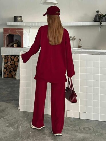 Duks trenerka komplet – ženski model s kapuljačom i donjim delom sa manžetnama. - Boje: bordo i crna - Gornji deo: oversize kroj, kapuljača, dugi rukavi sa širokim manžetnama; na leđima i rukavima...