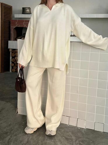 Komplet ženske pletene trenerke – rolka džemper + široke pantalone -