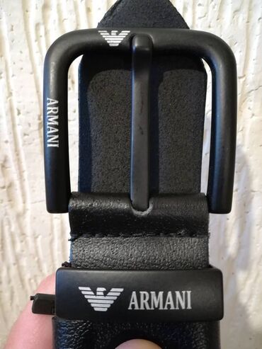 CrnaNovi muski kozni markirani kais Armani u crnoj boji. Zemlja porekla Turska. Odlican muski kozni markirani kais izradjen od vrlo kvalitetne, prave i debele koze. Nesto sto bi svaki ozbiljan muskarac trebalo da poseduje. Kais je veoma prijatan na dodir, ima onaj prepoznatljiv miris koze i uzivo izgleda mnogo bolje nego na slikama. Kais Armani je izradjen od prirodne, govedje koze. Novi muski kozni markirani kais Armani u crnoj boji sa etiketom.