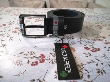 Novi muski kozni markirani kais Dsquared sa etiketom.