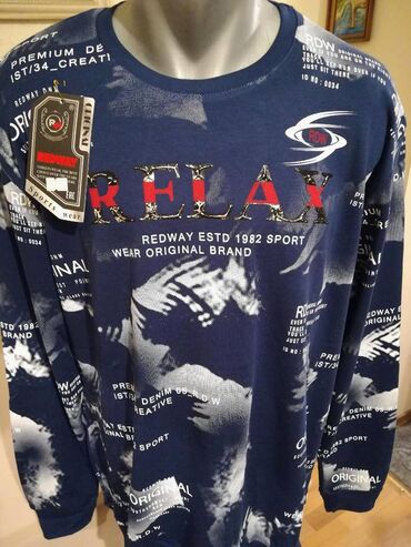Novi muski pamucni duks Redway u velikim brojevima 3XL 4XL Plavi. Turski.